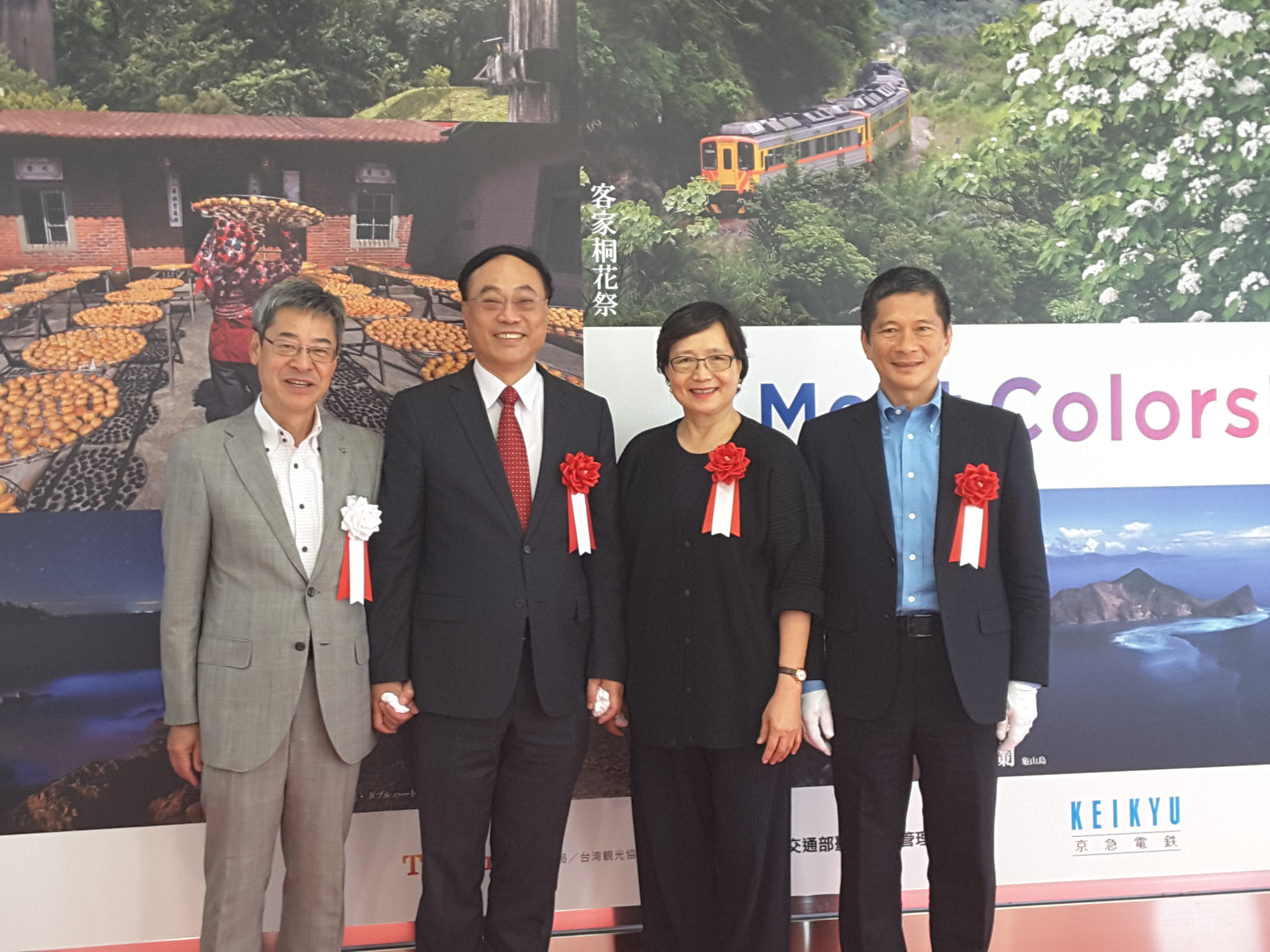 交通部觀光局接續與日本京濱急行鐵道公司合作,特別於今日(8月24日)上午在京急電鐵羽田國際機場站,擴大「浪漫台三線」宣傳行銷力道,在國際機場可以看到台灣文宣,大型揭幕儀式由京急電鐵原田社長親自主持,並與李主委和葉會長,以及周局長率駐東京辦事處鄭所長等共同啟動。