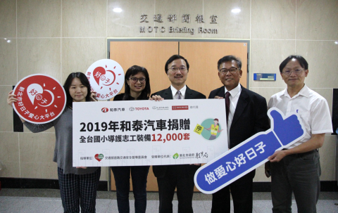 TOYOTA、LEXUS及HINO台灣總代理和泰汽車長期致力於交通安全公益活動,因觀察到全台小學交通導護志工在長期值勤下有破損污垢、品質參差不齊等狀況,為提升導護志工在站崗時之安全,和泰汽車自2011年開始捐贈全台各縣市國小導護志工警用等級反光背心與指揮旗,2019年共捐贈12,000套導護志工裝備予新北市、基隆市、宜蘭縣、新竹市、新竹縣、苗栗縣、花蓮縣、屏東縣等縣市國民小學,並於10/1(二)由指導單位交通部道路交通安全督導委員會、本年度受贈代表新北市政府教育局,舉辦和泰汽車導護裝備捐贈合影儀式,共同呼籲更多人加入熱心志工行列,一起守護全台學童的交通安全。
