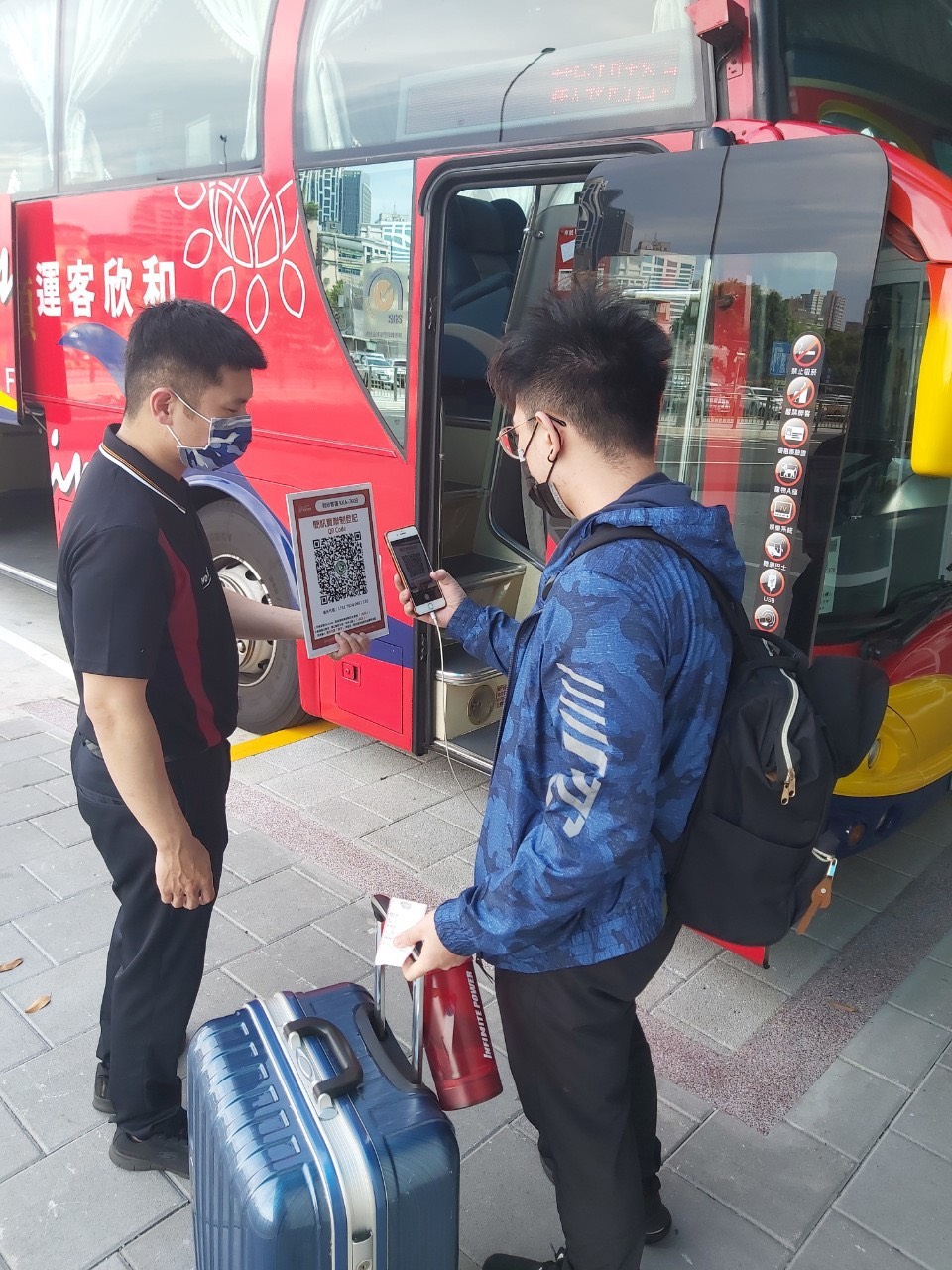 麻豆監理站蔡娟娟站長表示,因應疫情民眾如因必要需搭乘大眾運輸,為讓民眾於防疫期間安心搭乘公路客運,已督導本轄公路客運業者確實遵守中央流行疫情指揮中心指示辦理各項防疫措施,並配合行政院推動之「簡訊實聯制」,全面於車輛張貼QR-code供旅客掃描並免付費發送簡訊,請民眾配合落實相關作業,也請民眾確實依規定於進入客運場站及搭乘公路客運期間配戴口罩。另為防治嚴重特殊傳染性肺炎,民眾於公路客運運具內及國道客運(含各轉運站)各車站付費候車區內禁止飲食,經場域人員勸導不聽者,將由地方政府依傳染病防治法第70條第1項規定,處新臺幣3千元以上1萬5千元以下罰鍰;若因生理需求須喝水、服藥、哺乳,應於食用完畢後儘速配帶口罩。